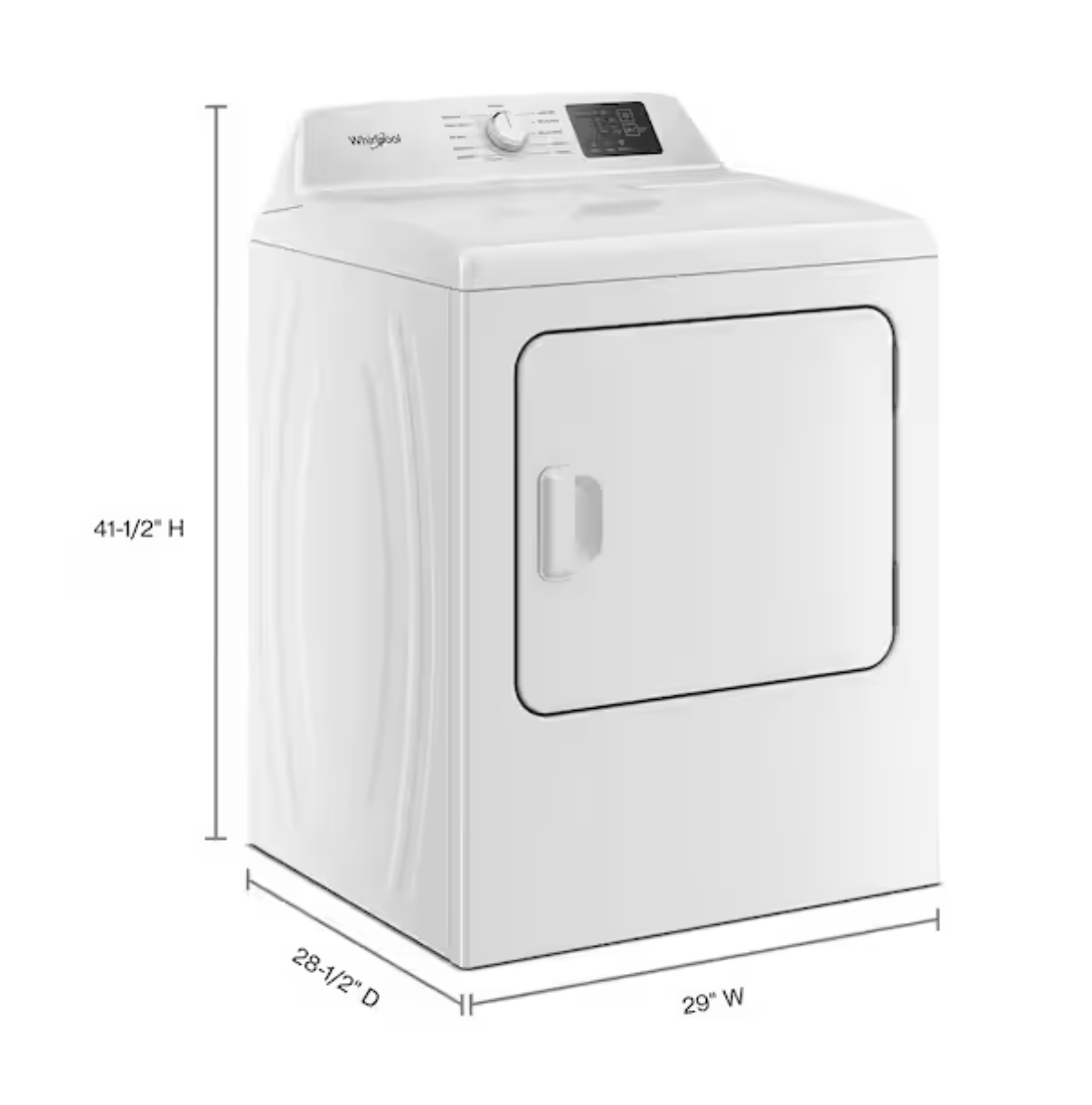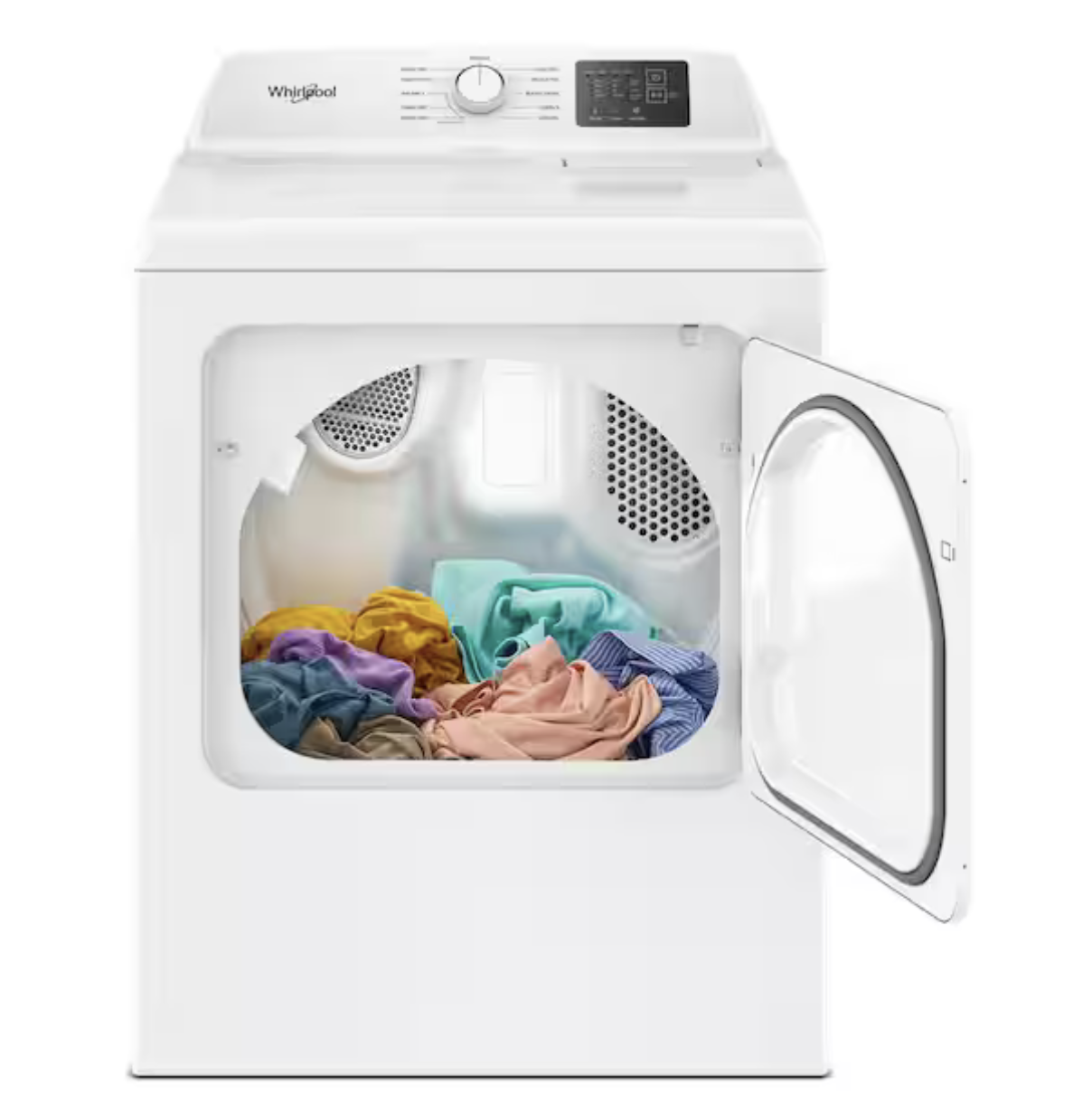 - With a 7.0 cu. ft. capacity dryer drum, there’s plenty of room to easily handle large loads and bulky items.